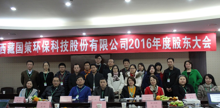 西藏國(guó)策環(huán)??萍脊煞萦邢薰?016年度股東大會(huì)于2月9日在成都召開(kāi),股東大會(huì)由董事會(huì)秘書(shū)楊偉強(qiáng)主持。董事長(zhǎng)兼總經(jīng)理陳鴻、副董事長(zhǎng)范津濤、副總經(jīng)理幸川、財(cái)務(wù)總監(jiān)趙永花、證券部經(jīng)理張麗、監(jiān)事會(huì)主席蘇昌軍等公司董事、監(jiān)事及核心成員出席本次會(huì)議。
