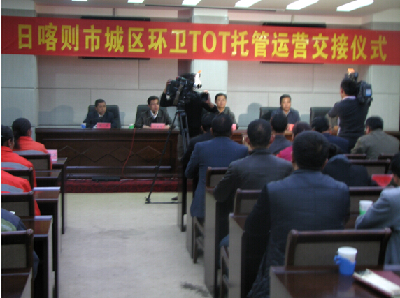 西藏國策環(huán)保科技股份有限公司與日喀則市人民政府于2014年4月26日舉行了日喀則市城區(qū)環(huán)衛(wèi)TOT運營交接儀式。