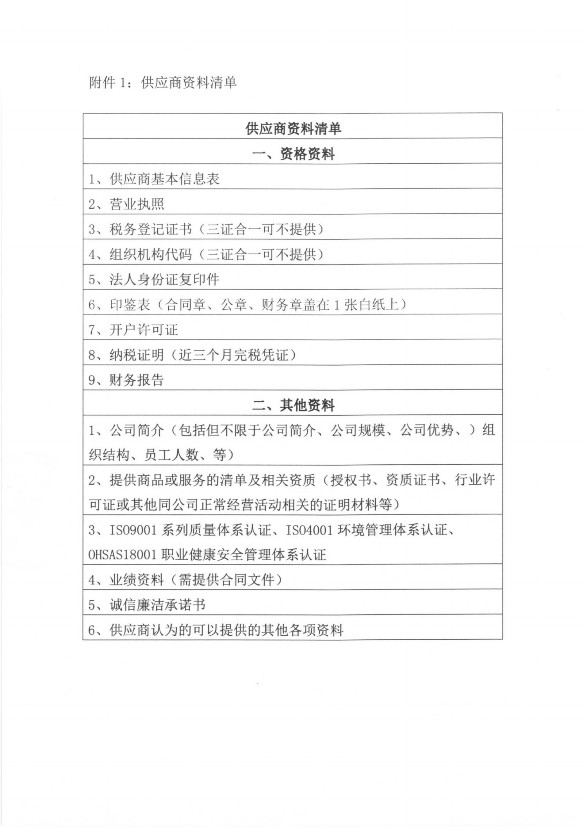 1、擬入庫(kù)供應(yīng)商須根據(jù)公司要求提供相關(guān)資料,相關(guān)資料經(jīng)公司審核后方可入庫(kù)。