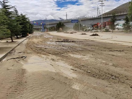 面對突發(fā)險情,國策環(huán)保山南分公司總經(jīng)理久米土單高度重視,第一時間組織人員、調(diào)配車輛奔赴現(xiàn)場疏散途經(jīng)的車輛及行人,組織機械對泥石流形成的土石、泥沙進行清運,以最快速度消除道路安全隱患。